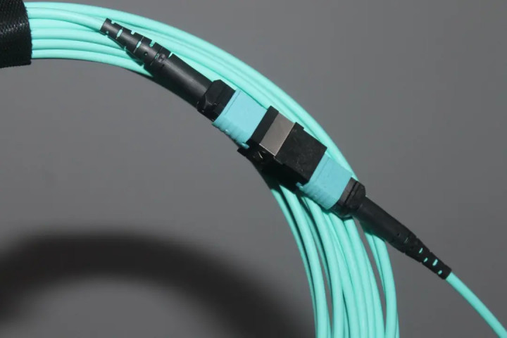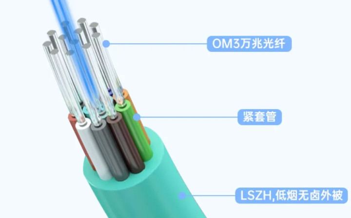 12芯OM3万兆光纤,衰减量可以忽略、干扰几乎为0、延迟人类很难感知到(光速你懂的)。